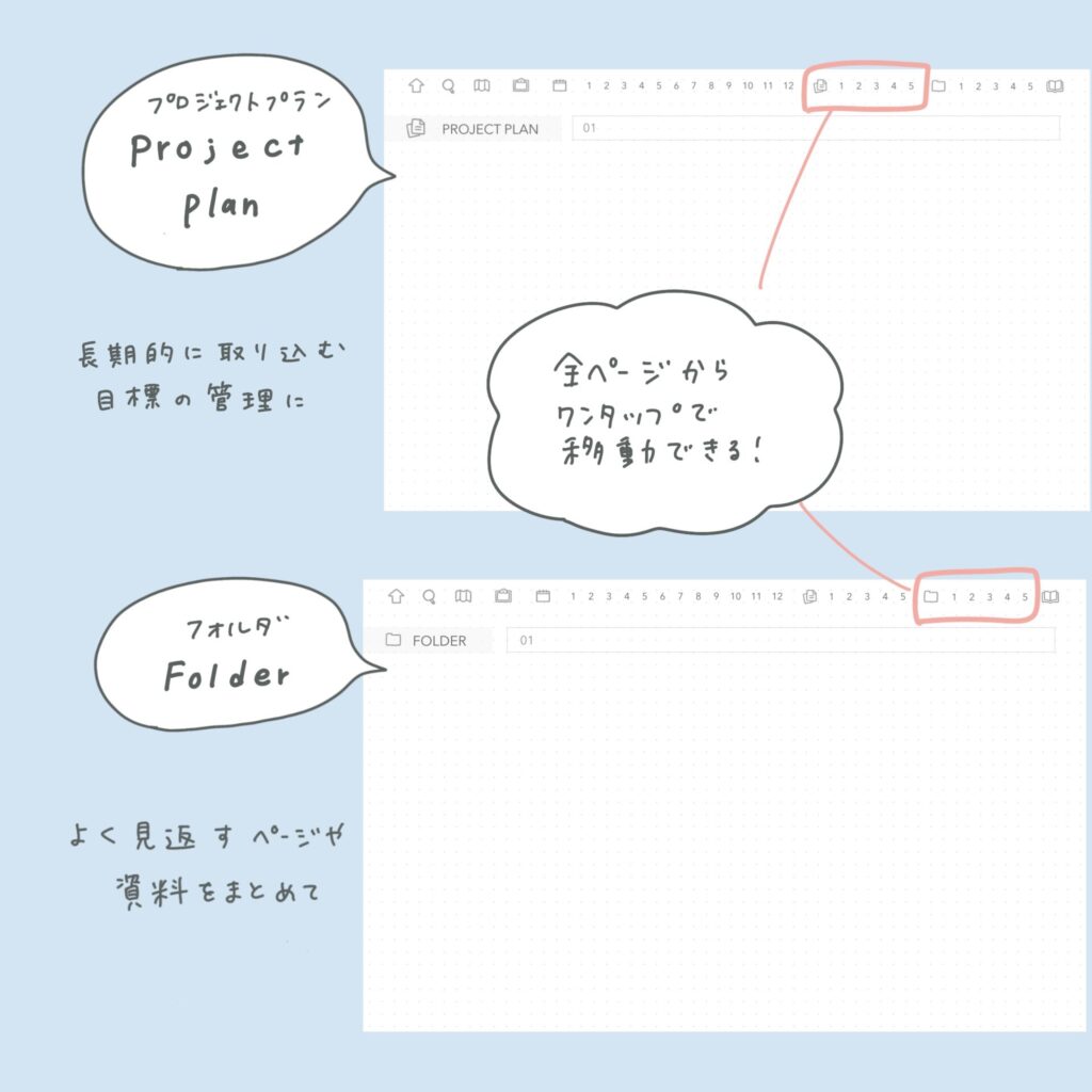 そして長期的に取り組む必要がある目標を管理するのに便利なプロジェクトページと、頻繁に見返す資料を管理するのに便利なフォルダページを新たに追加しました。