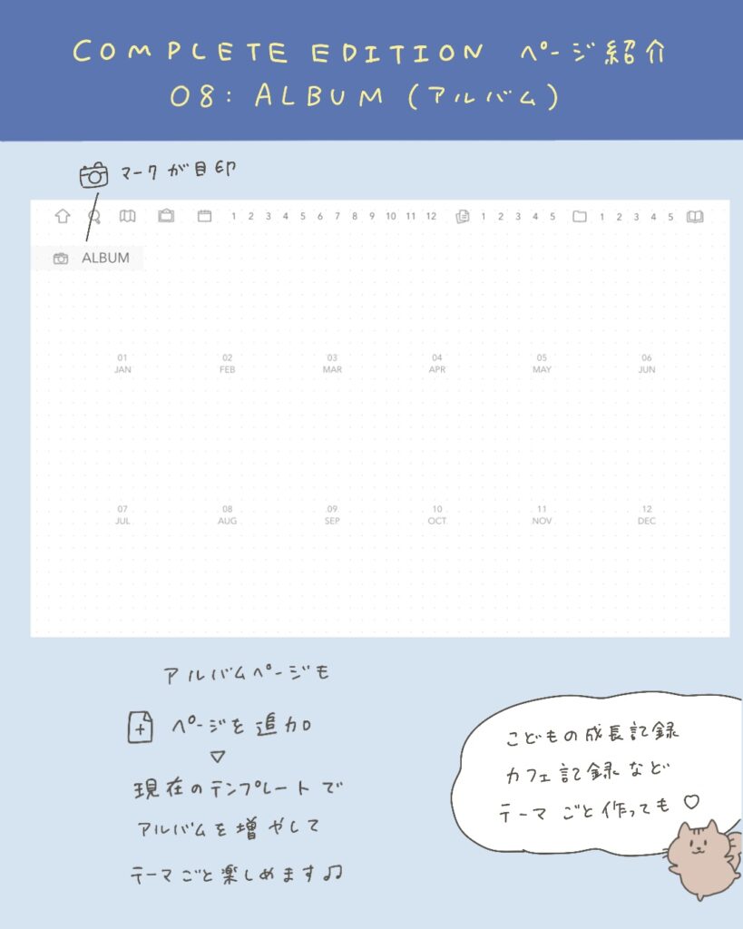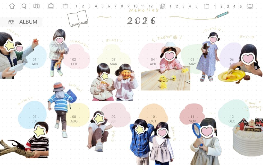 「こどもの成長」「旅行記録」「カフェ記録」などテーマごとのアルバムを作っても良いですね🫶