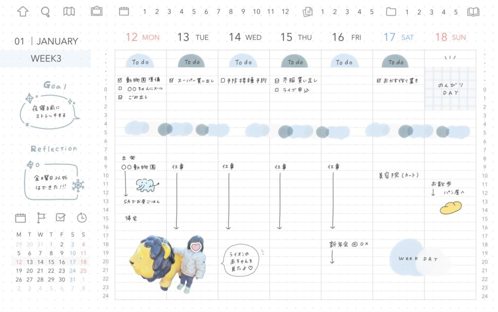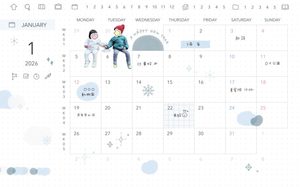 記入例に使用しているのは1月のテーマカラー❄️アイスブルーに合わせて作成したデジタルステッカーです。