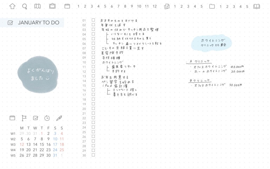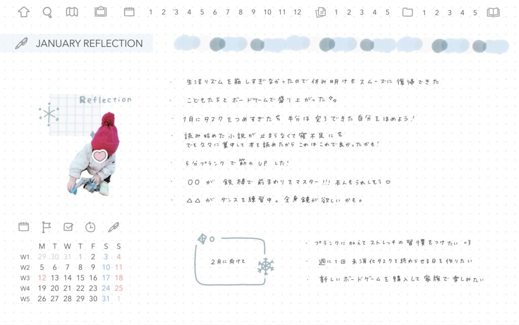 シンプルなドット方眼で、自由な形で1ヶ月を振り返ることができます😌