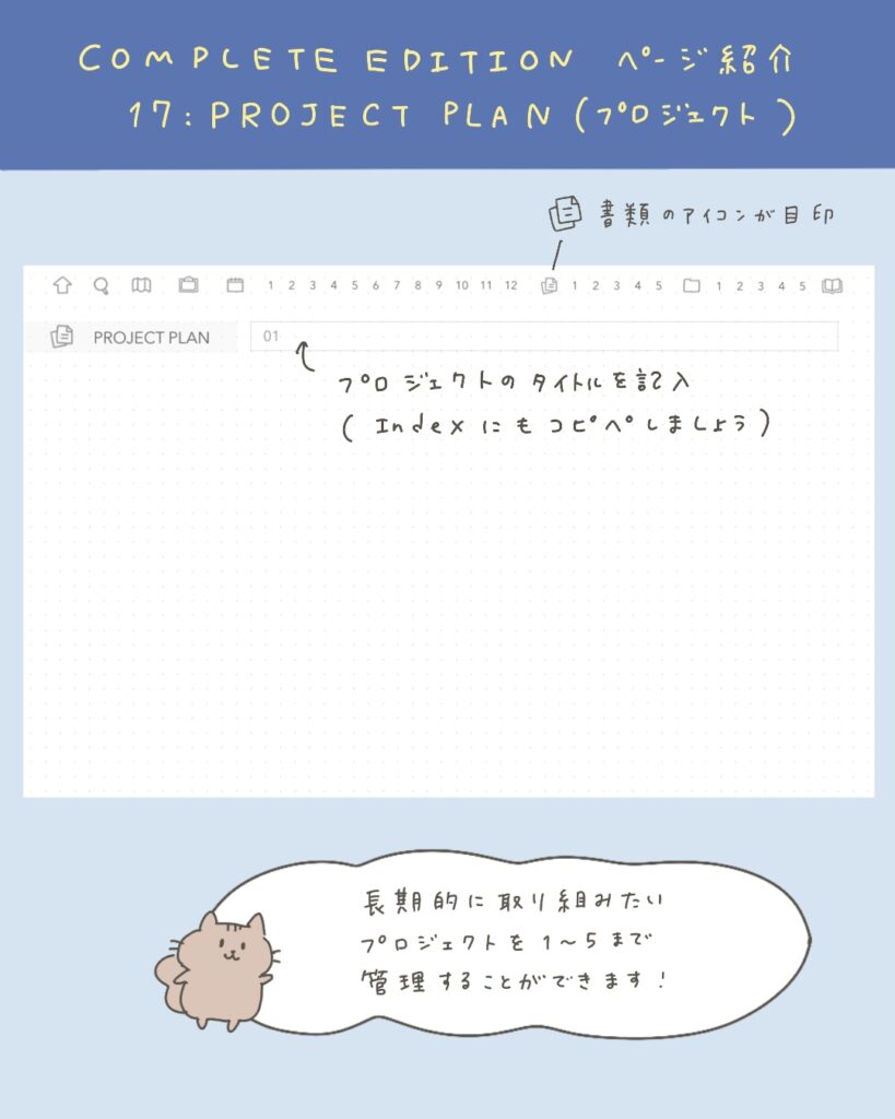 PROJECT PLANとFOLDERの01〜05にはタイトルを記入します。