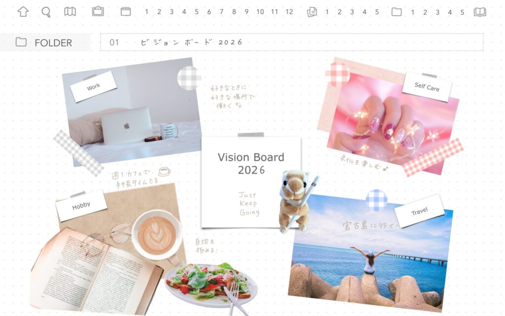 ヘッダーを使って直接ハイパーリンクで飛べるので、VISION BORD(ビジョンボード)など毎日見返したいページに使うのがおすすめです💖