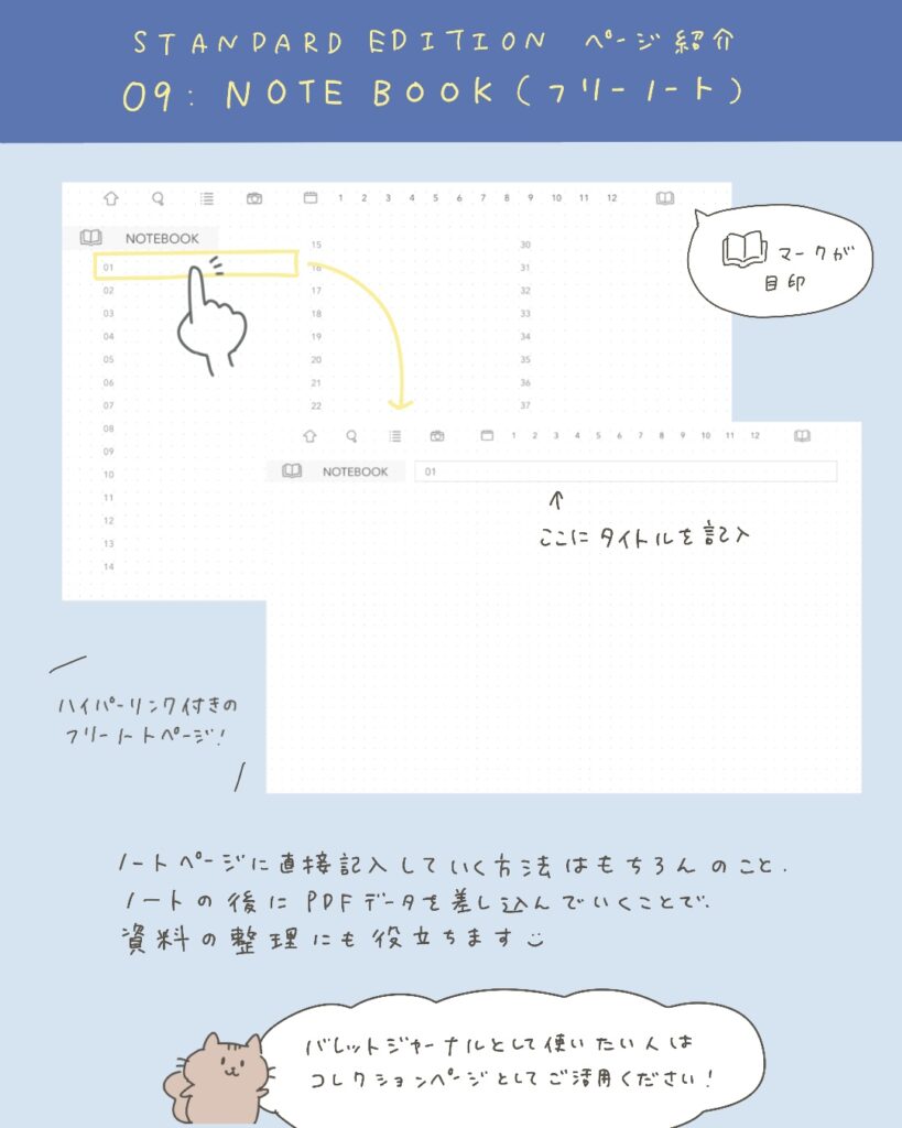 番号およびタイトルを記入するスペースにハイパーリンクが付いているので、ハイパーリンクから各フリーノートのページに飛んでノートを記入してください。
