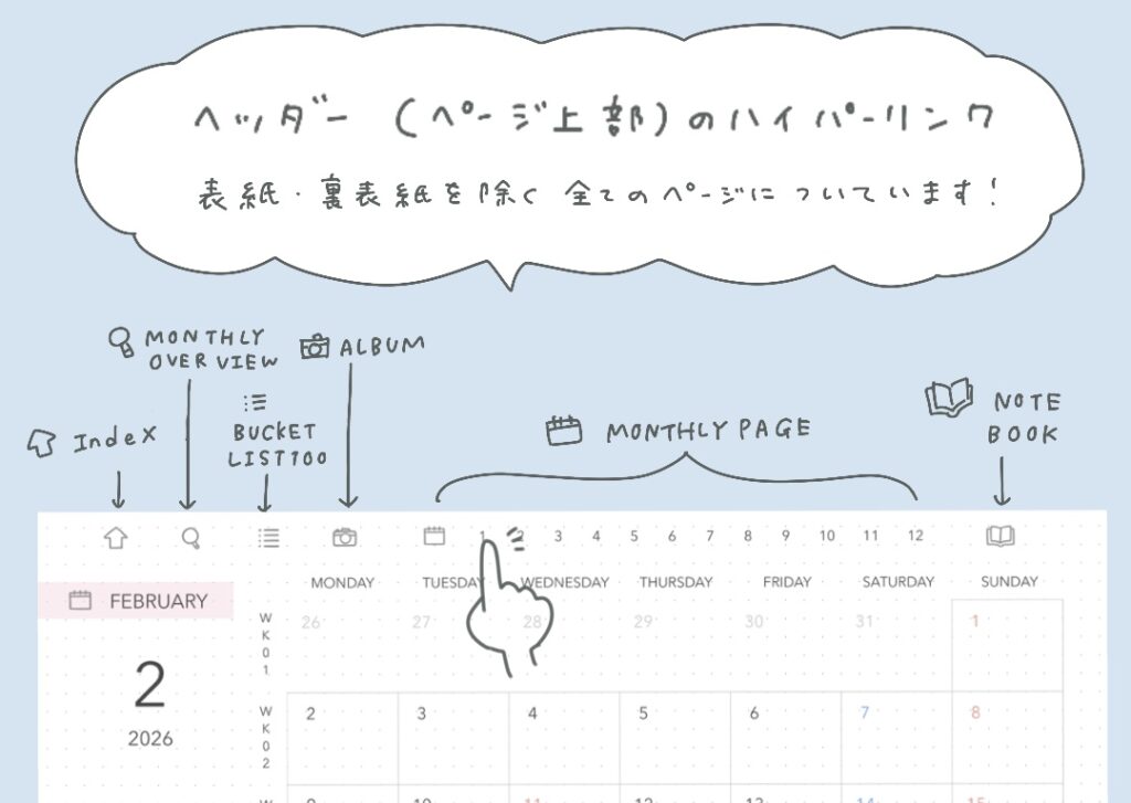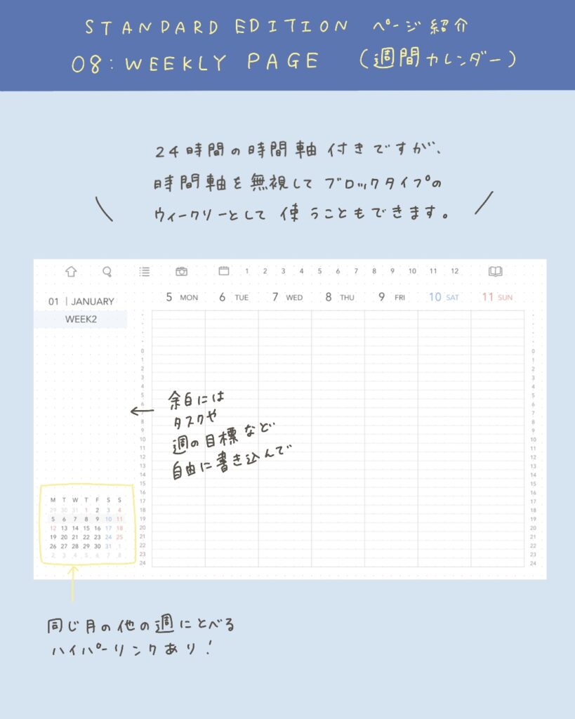 また、ページ左下のカレンダーにはハイパーリンクが付いているので、他の週へのページ移動もスムーズです!
