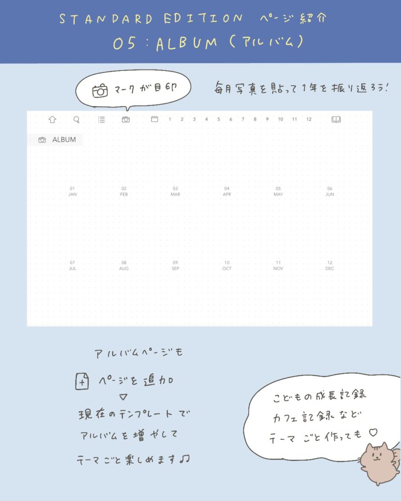 「こどもの成長」「旅行記録」「カフェ記録」などテーマごとのアルバムを作っても良いですね🫶