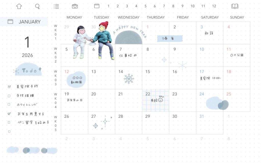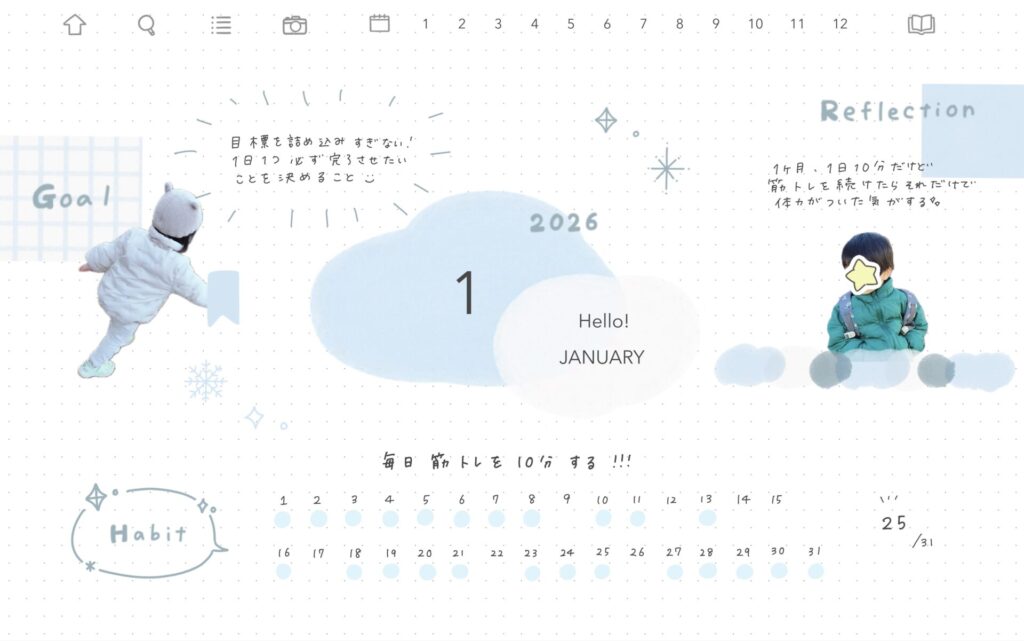 記入例に使用しているのは1月のテーマカラー❄️アイスブルーに合わせて作成したデジタルステッカーです。