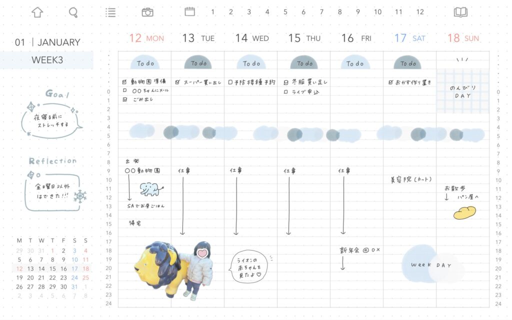 無料でダウンロードできますが、ウィークリー手帳として1年を通してお使いいただけるデジタルプランナーです📓