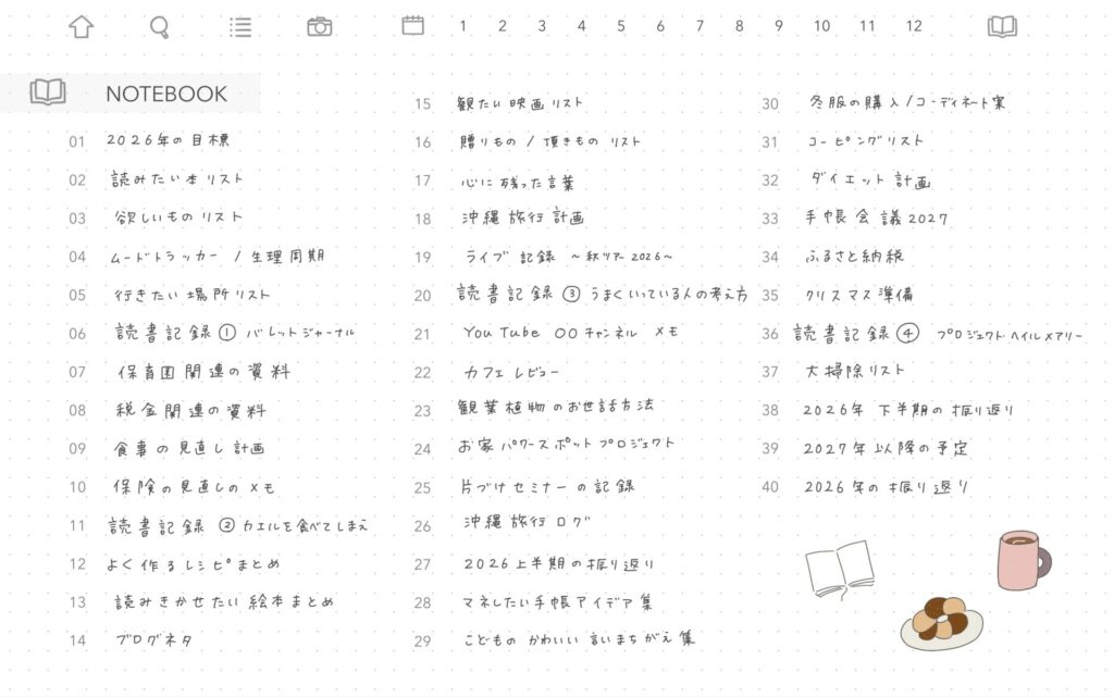 使用する際は、まずはこのインデックスにフリーノートのタイトルを記入します。