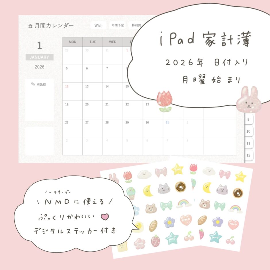 大人気こりすの家計簿に【2026年日付入り】が登場しました☺️ぷっくりNMDステッカー付🎖️