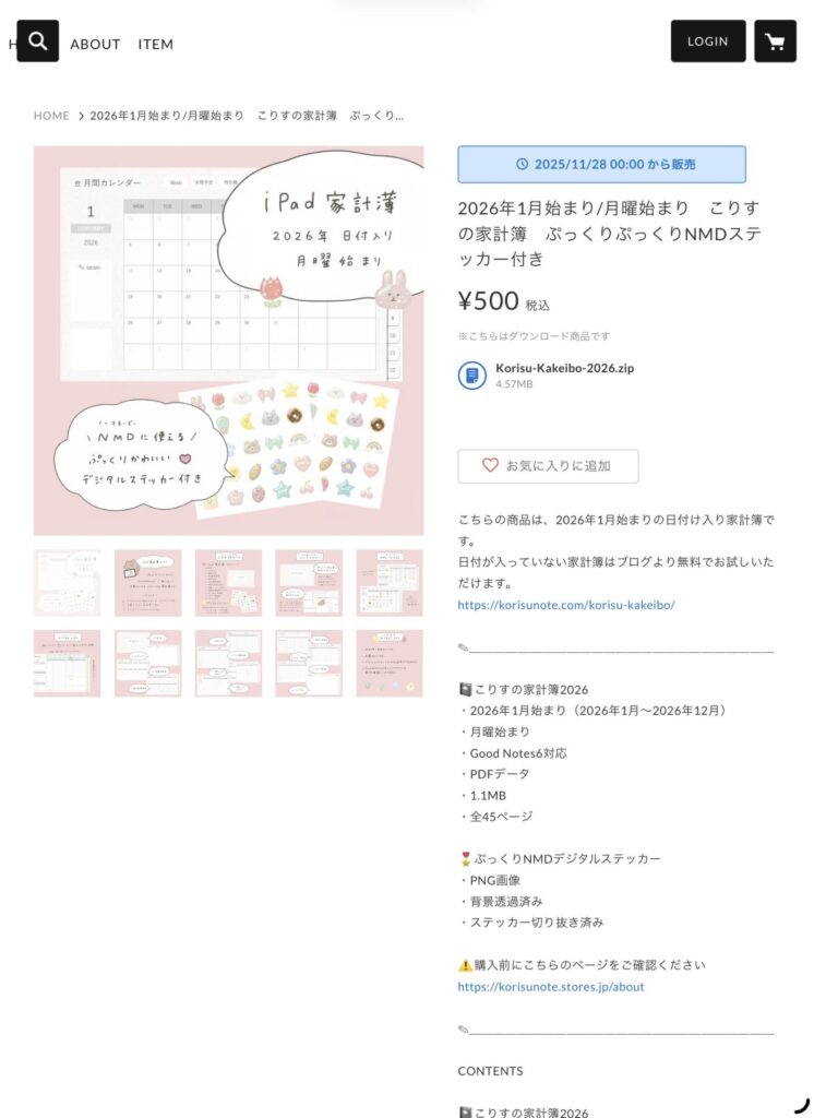 この度STORESのデジタルノートショップ「こりすのーとshop」にて、こりすの家計簿に2026年の日付入を入れた「こりすの家計簿2026」の販売を開始しました😌