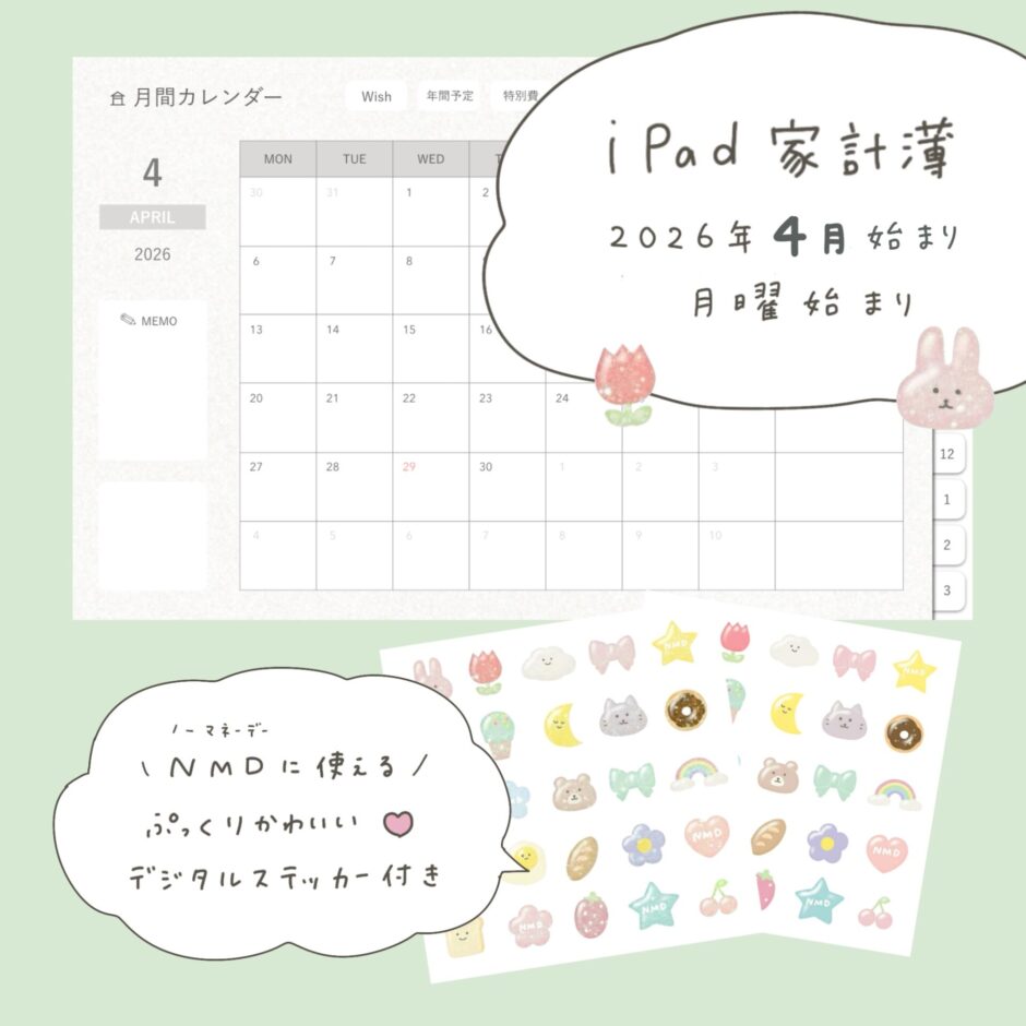 「こりすの家計簿2026|4月始まり」の販売を開始しました☘️|500円でiPad家計簿ライフを始めよう♪